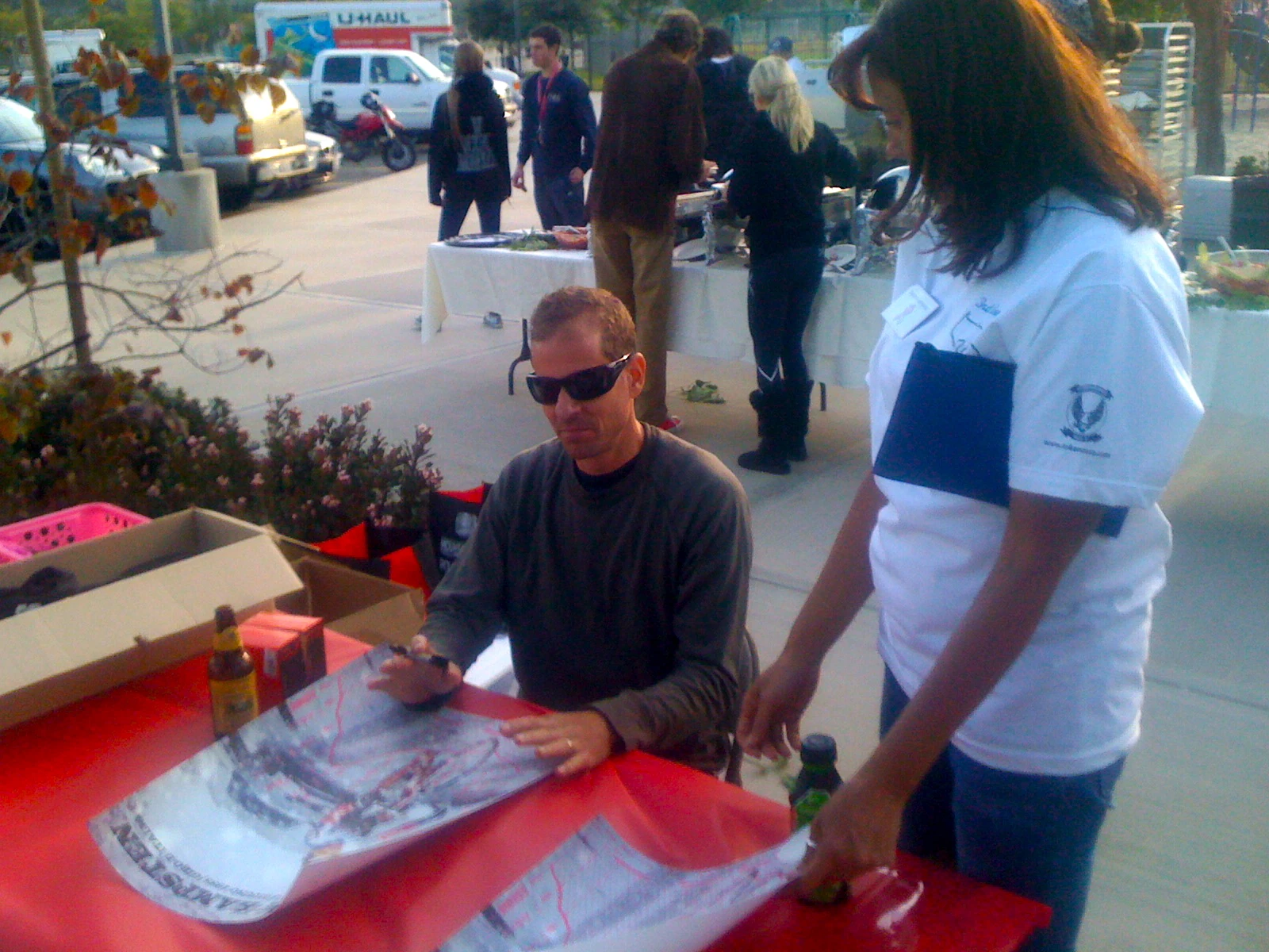 Andy signing posters when the ride was over.