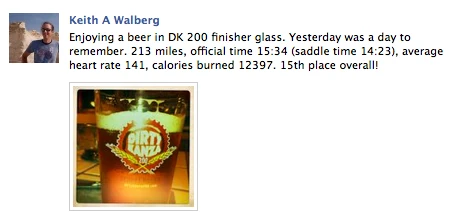 My brother didn’t finish the Dirty Kanza on Saturday, along with 75% of the field. Dan Hughes, the owner of Sunflower Bicycle Shop in Lawrence was the first solo finisher. Pretty great ride Dan. Keith Walberg started at a casual pace and that paid off. He finished 15th over all in a little over 15 1/2 hours. That was unbelievable. I’m not sure I could have done it. I don’t really have any desire to do it, but that must be wrong because it is so interesting to me. I can’t imagine what it would have been like at 11 hours thinking I have only 4 1/2 hours of hilly gravel roads to ride. My butt would have been toast for sure. Dirty Kanza results.