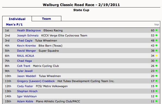 2011 Walburg Road Race Results. I would of loved to be there. How about Raul in 6th? Great!!!