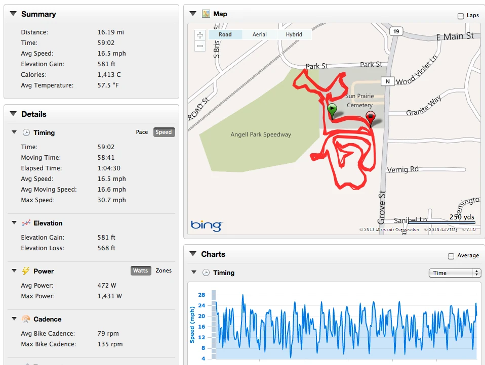 Anyway, I was looking around and found the power downloads of Ryan’s power output at the Madison Cup race and Cross Vegas. I posted them below.( Here’s the link to Garmin.) I didn’t think it was humanly possible to be producing those numbers, especially in a cyclocross race. I have no idea what he is using for measuring his power, but something is amiss. Maybe he’s using a random number generator instead of a SRM? But, if the numbers from Madison are even close to correct, then he is focusing on the wrong aspect of this sport and should be winning classics and the like in Europe.