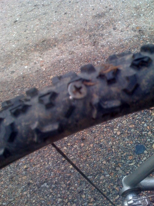 I wasn’t horrible. Just pretty bad. I never passed a soul the first lap and was in the 40’s. I eventually moved up to the upper 20’s before screwing up a little and getting passed by a group of 5. I started feeling remarkably better with 3 laps to go, but then disaster struck. Well, not disaster, but bad luck. I started hearing a ticking from my rear wheel of something hitting my chainstay. It sounded like a rock caught in a MTB tread or something. It wasn’t every revolution, but pretty often. 1/2 a lap later I was riding on my carbon rim. I had a drywall screw sticking out of my rear sewup. I happened to be really far away from the pit and less than a stone’s throw from my van. Super easy, no brainer, choice.