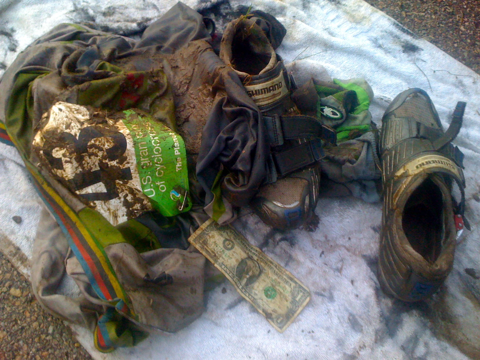 My pile after the race. I had to take a dollar on the hill, trying to keep the professional thing going.