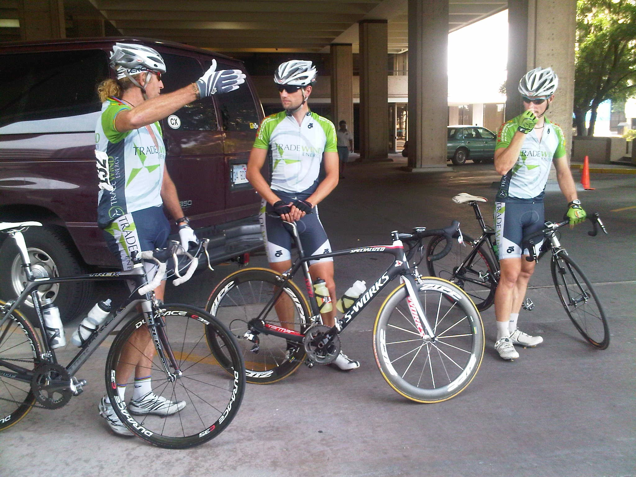 Prerace meeting in the parking garage.