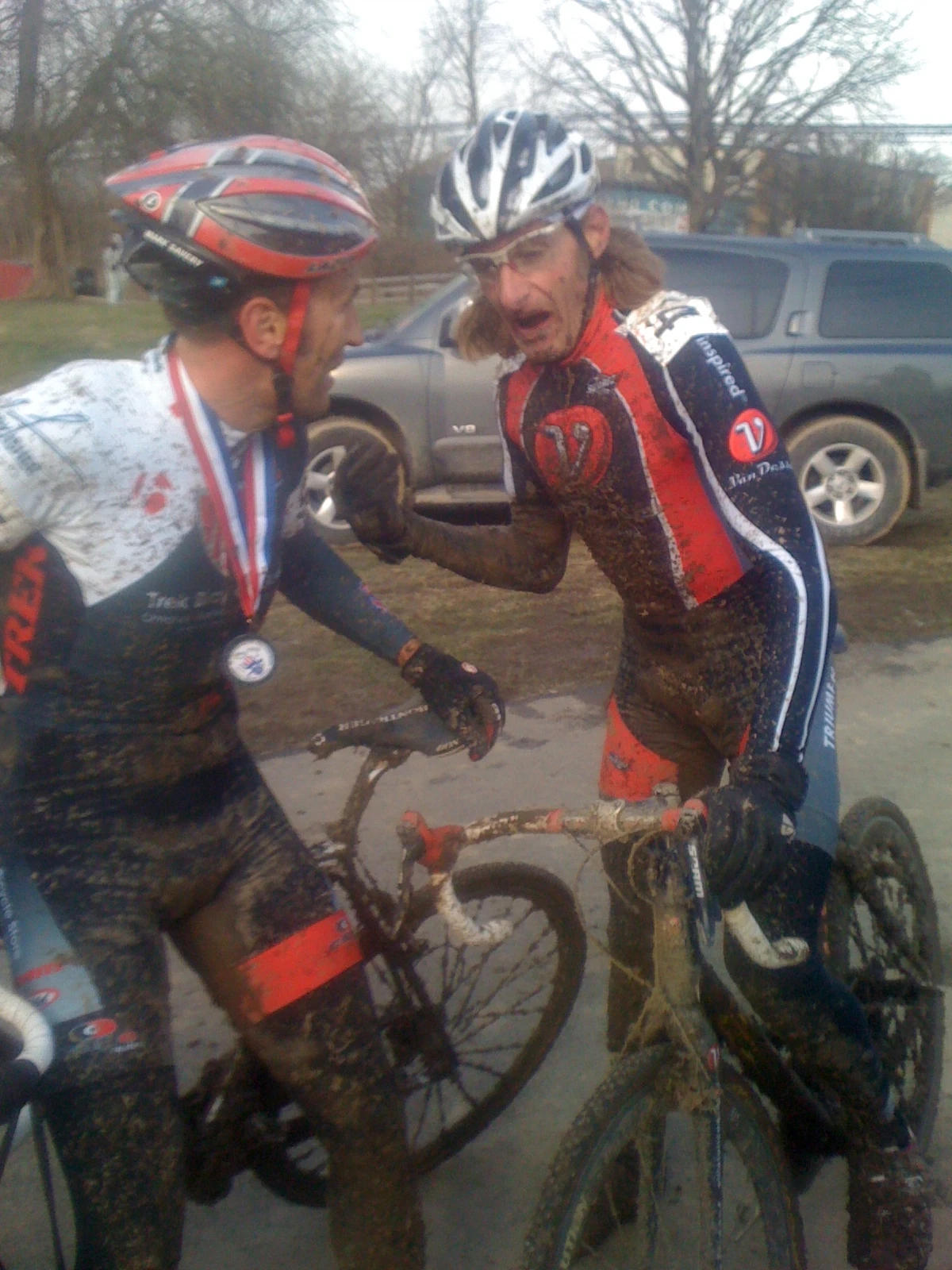 My buddies, Mark Savery and Bill Elliston after their race. Mark rode an excellent technical race and finished 3rd behind Webber and Dwight. A super result, congratulations!