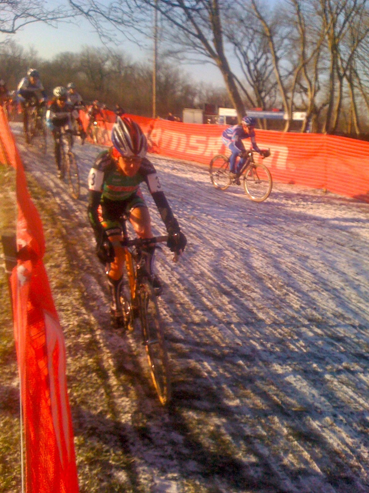 I feel kind of strange stating this, but I never really got to ride my bike as fast as I could the last three races. That is at Master’s Nationals, the qualifying race at Worlds, then at Worlds itself. I was there to win and not show off. But, it is still kind of stinging not getting to see how well I was really going. If I could redo one thing, I would have ridden the ELite race at Nationals now, but there are no do overs. I put in a pretty good effort on the 2nd lap in the Worlds, but still wasn’t going completely full out. I had a ton of pressure in my tires, but there were still a million places that I could have pinch flatted a tire. Frozen, sharp ruts tend to do that, so I tried not to take any chances. Plus, riding full out in sketchy conditions sometimes isn’t the fastest way to go around a cyclocross course. Keeping your eyes up ahead of you, picking the correct lines is the key to going fast in conditions like this. I did a pretty good job of doing that I think.