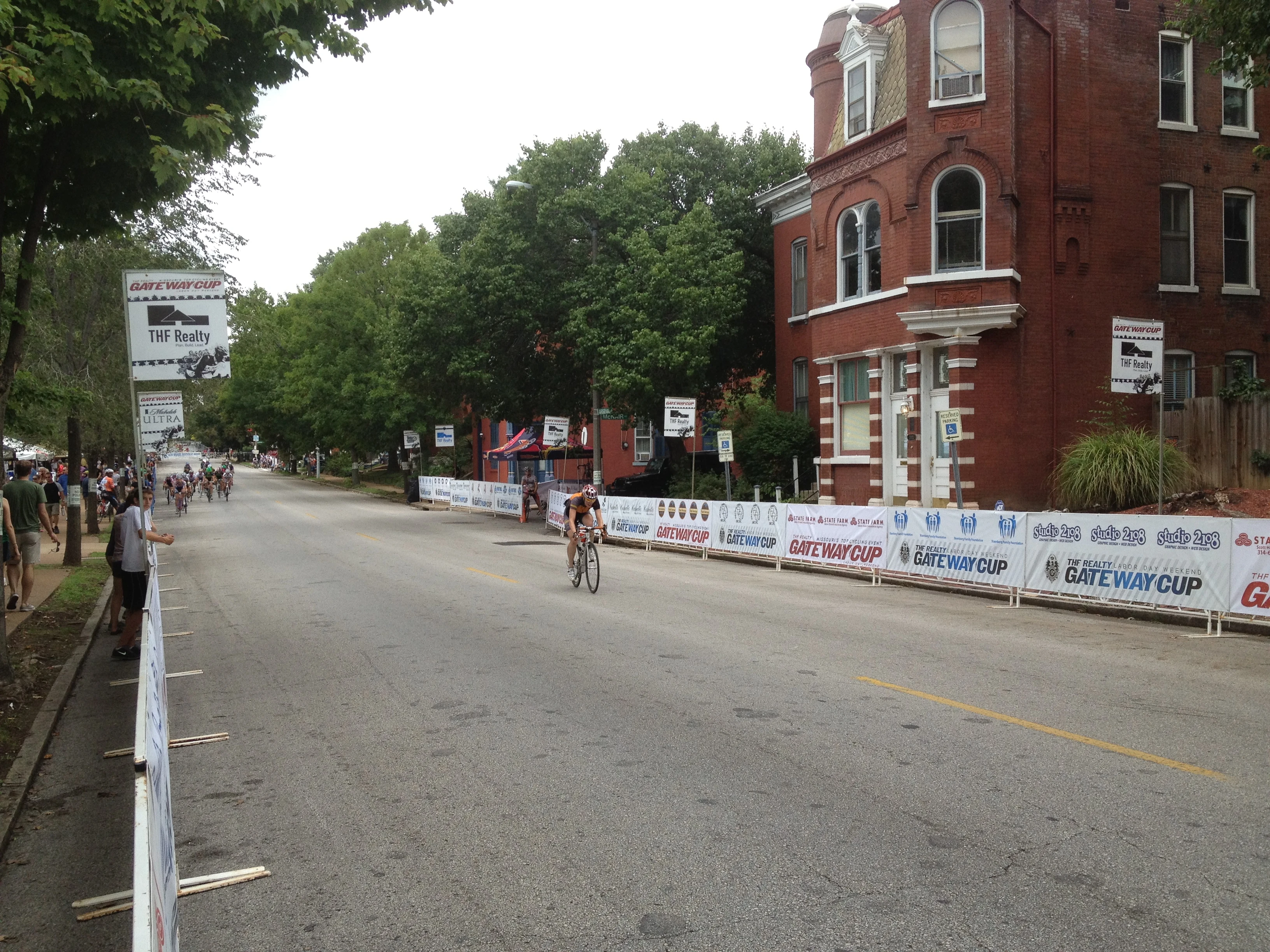 I knew the break would be gone instantly, within the first 15 minutes, it always has. I got into a move with the right combination on the 2nd or 3rd lap. I didn’t hardly warm up a pedal stroke because it was already super hot and muggy out. But, that didn’t matter. The break never got too far ahead and we got caught in just 2 or 3 laps. Brian, who came the to St. Louis the day before to join us, immediately attacked and rode away. There are lots of guys in the field that know how strong that Brian is and the best of them followed.