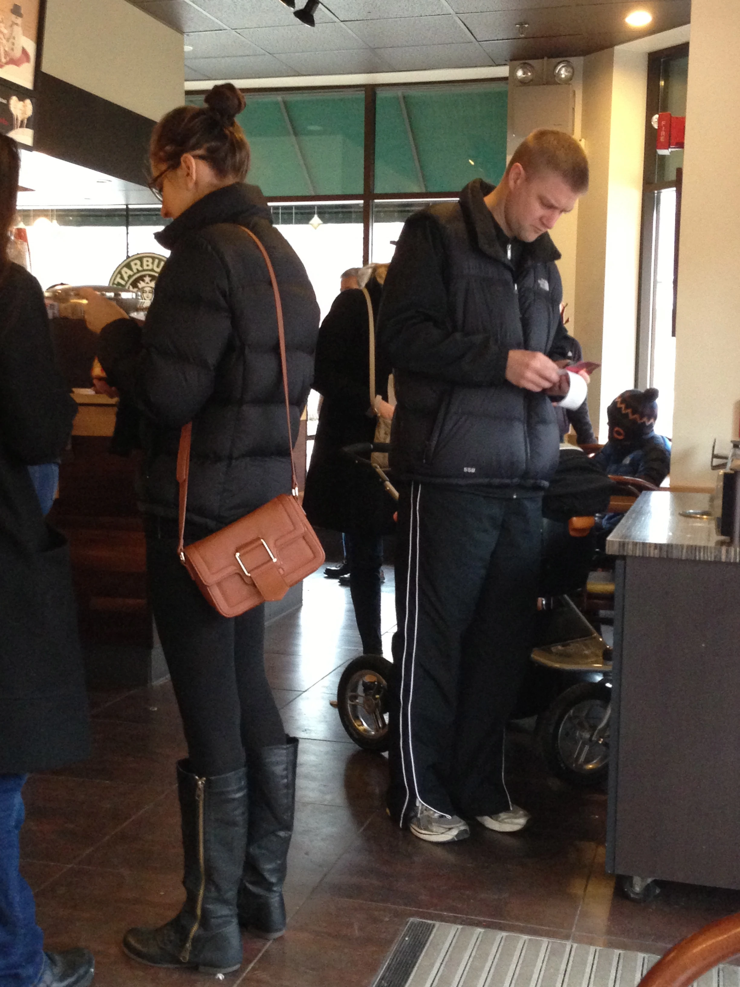 I tend to procrastinate on Christmas shopping. I haven’t done any yet, so I cram it all into a few hours today. I like the people watching, but don’t like the actual shopping much. The people watching is so unreal. I’m sitting at a Starbucks and there are no fewer than 7 people here wearing black The North Face down jackets standing in line waiting to order.