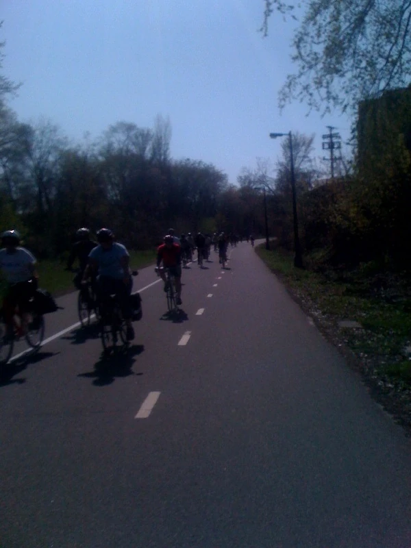 A near traffic jam on the bike path yesterday.