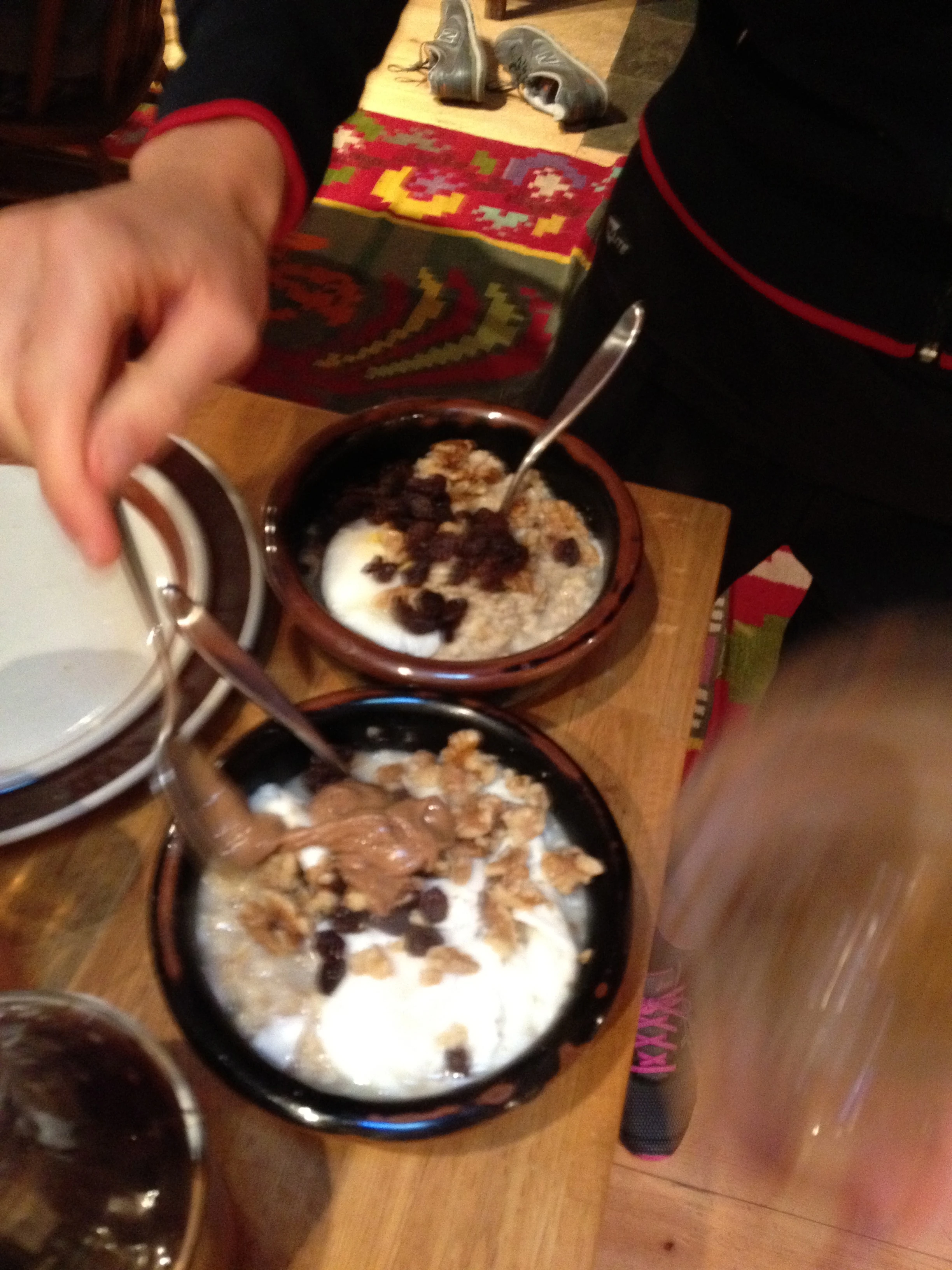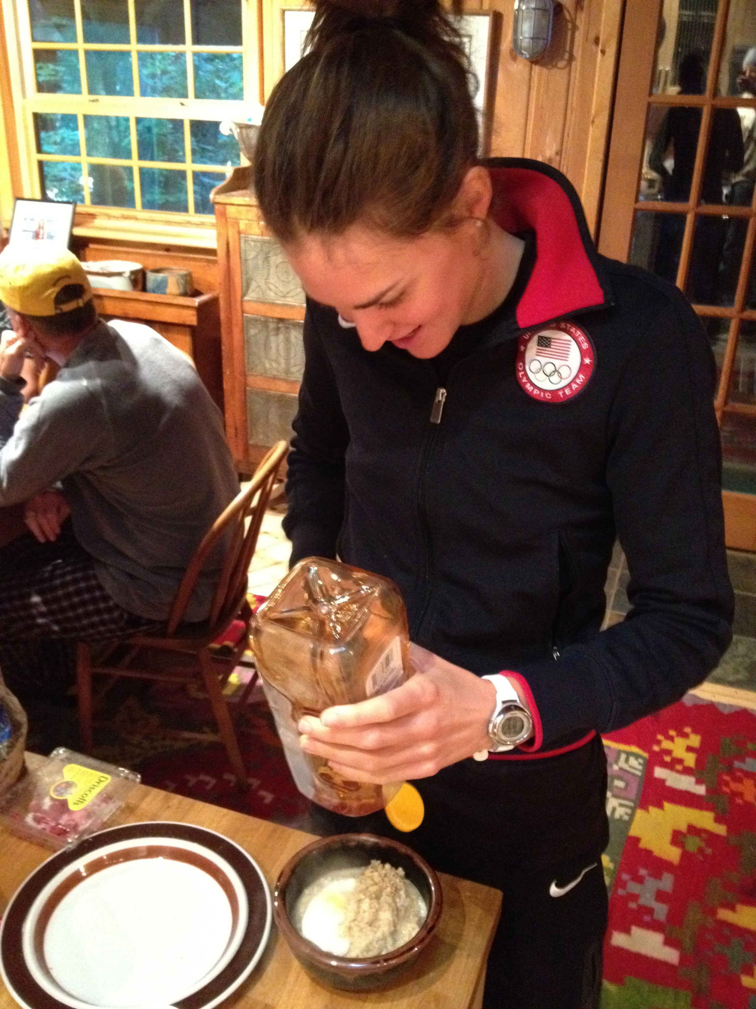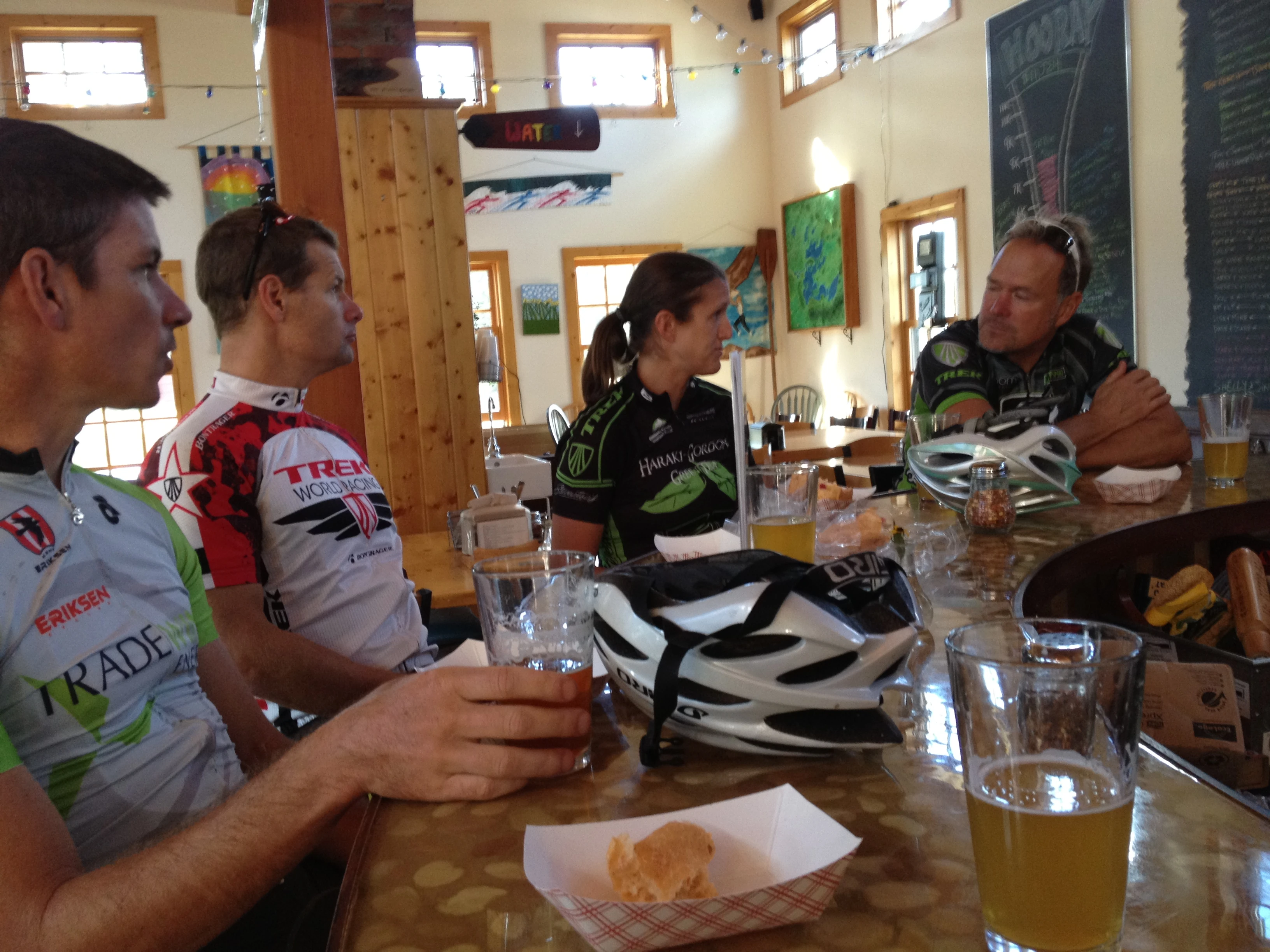 It turned from serenity to chaos yesterday up here at the compound. Kent and Katie Eriksen showed up, then Pat Lemieux rolled in a little bit later, along with his girlfriend, Gwen Jorgensen, plus his dad, and finally Catherine showed up at the River Eatery around 8, during the Packers/Bears game.