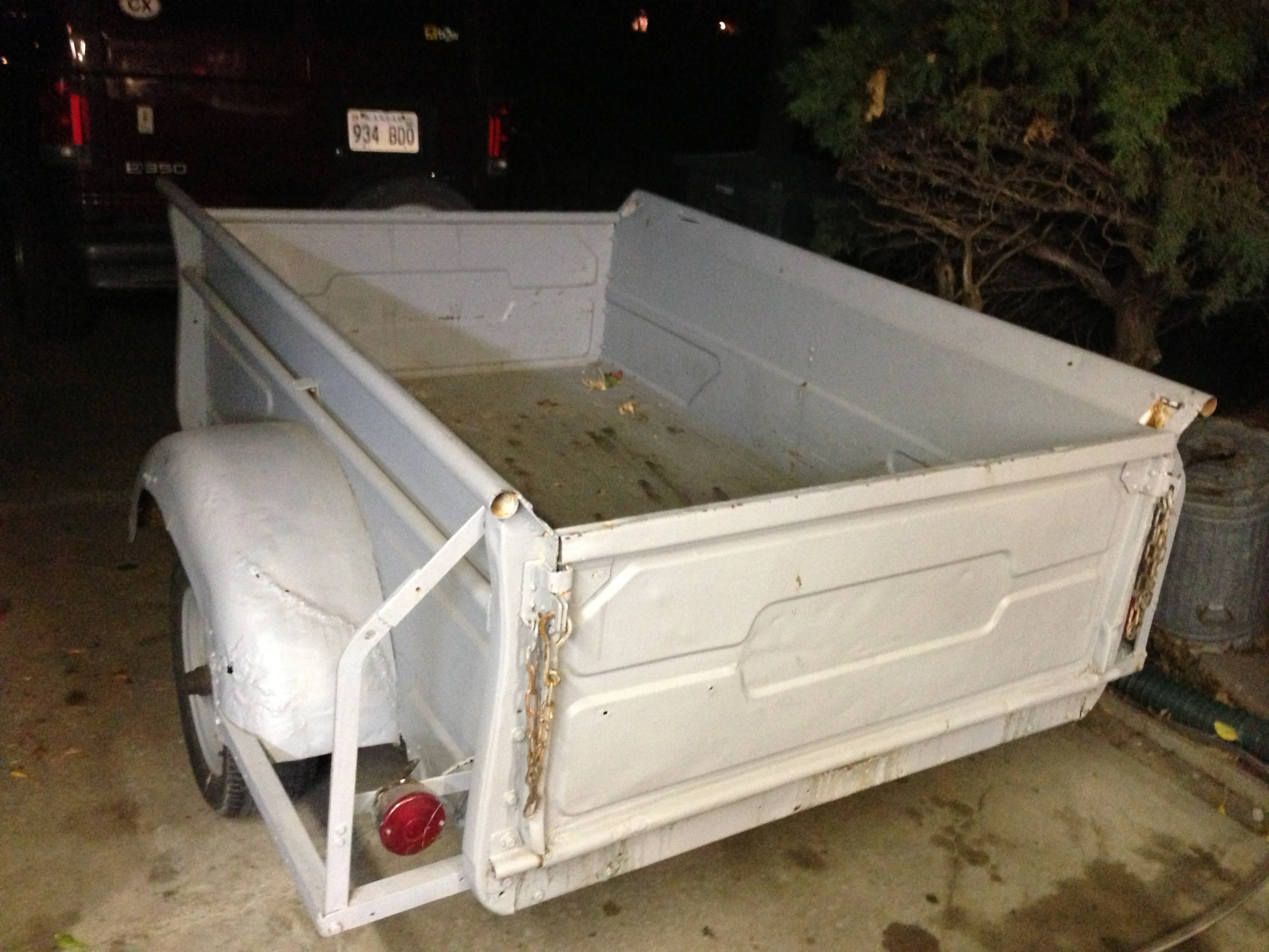 I bought a new trailer yesterday at a garage sale from a neighbor. $100. It is pretty small, only 7 ft.x 5 ft. bed. It was handmade. Pretty old, from the 70’s. It is so much heavier gauge metal than what they use nowadays. It’s not really big enough to haul the stuff I need to move around, but for $100, it was a no-brainer.