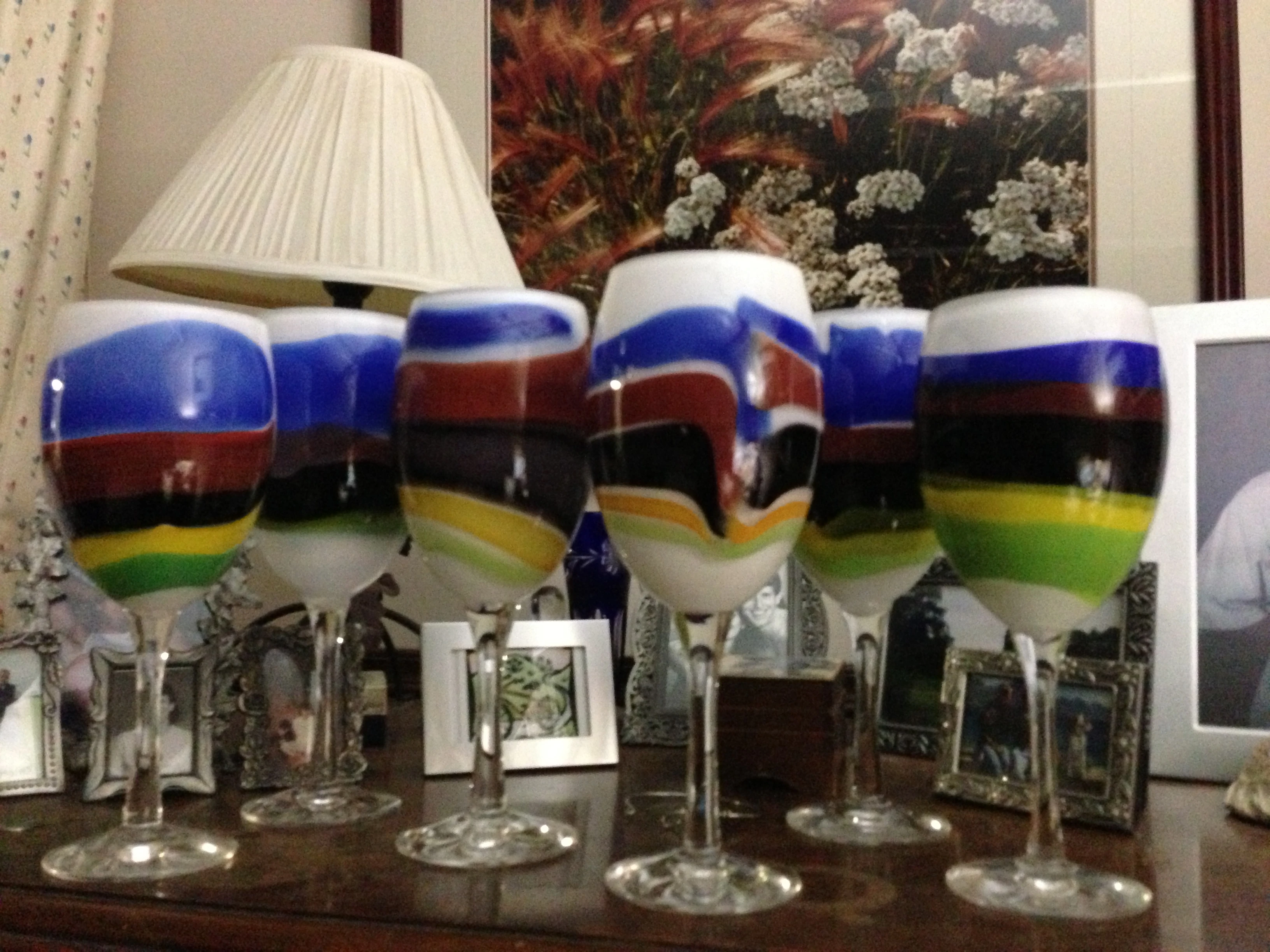 Glad you like the glasses, Steve. Trudi had the idea to make those for you after she came by for the lamp repair. Like I told her, “6 glasses, 6 world championships!!!!” Looking forward to making number seven!