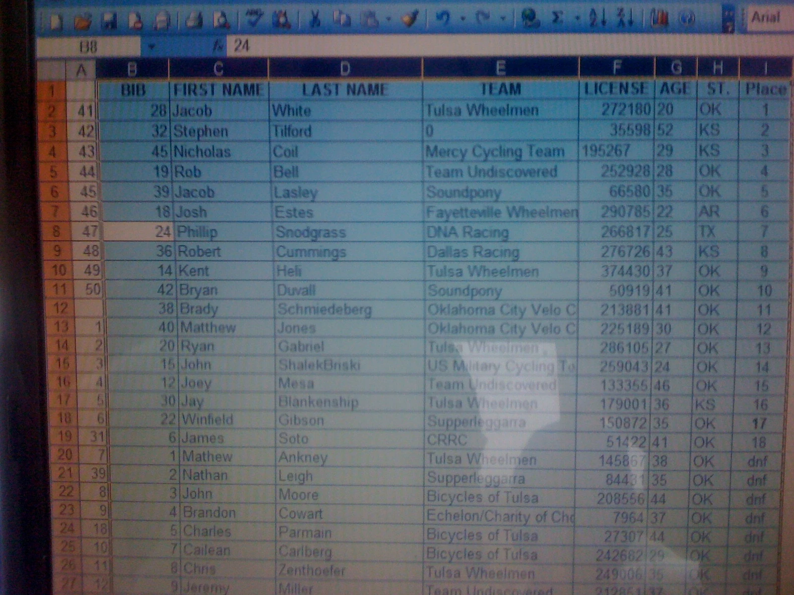 That pretty much describes yesterday’s road race at Skiatook Lake, North of Tulsa. I don’t know what the problem was really. Probably a lot of things adding up to nearly a total disaster.