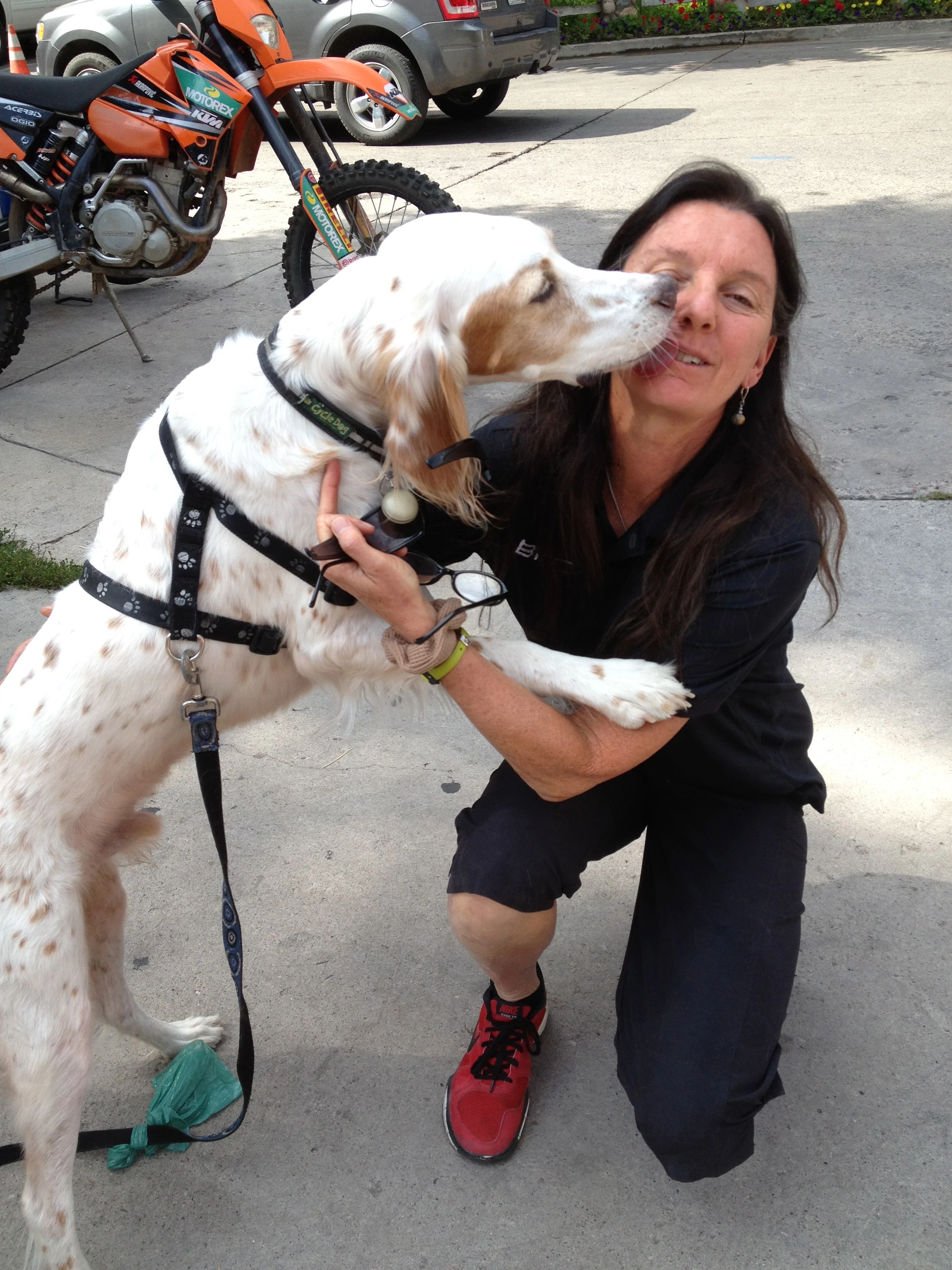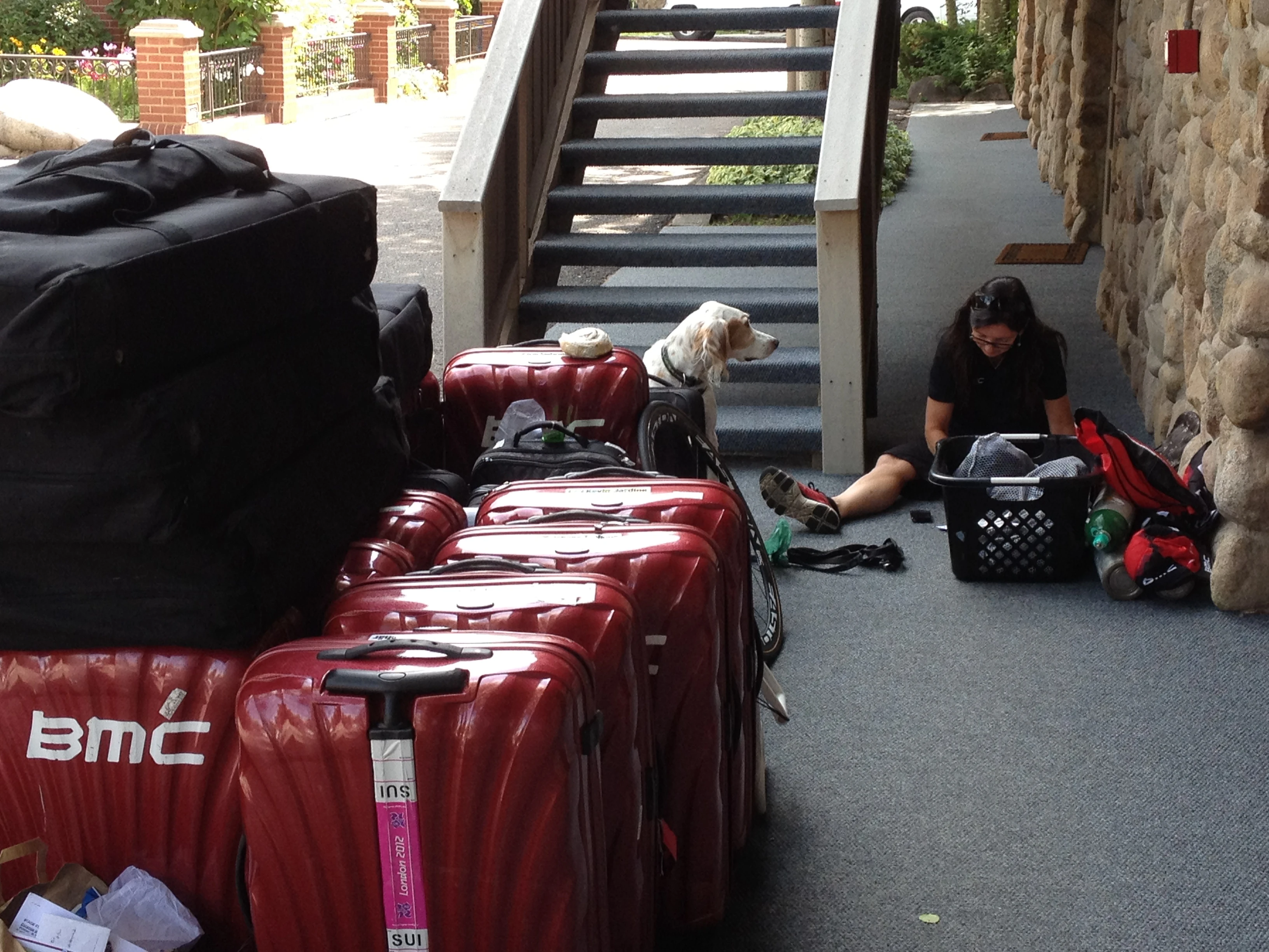 I’m still in Aspen. The Pro Challenge finishes here in a few hours. This post is late because I just met up with Trudi as she came straight here to start the hotel work. Bromont was obviously very happy to see her.