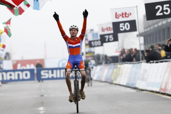 Mathieu van der Poel winning today in Belgium. He was pretty emotional crossing the line.