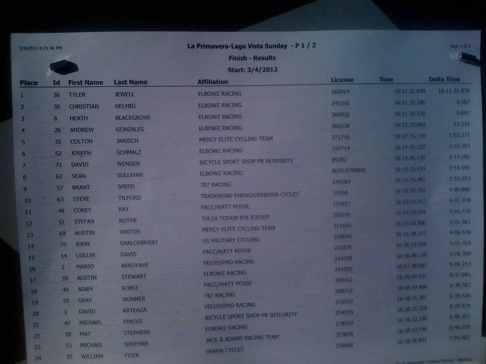 I just got back to Topeka a few minutes ago. It is after 4 am. I think the results below speak for themselves. I’ll post something on the race when I wake up later.