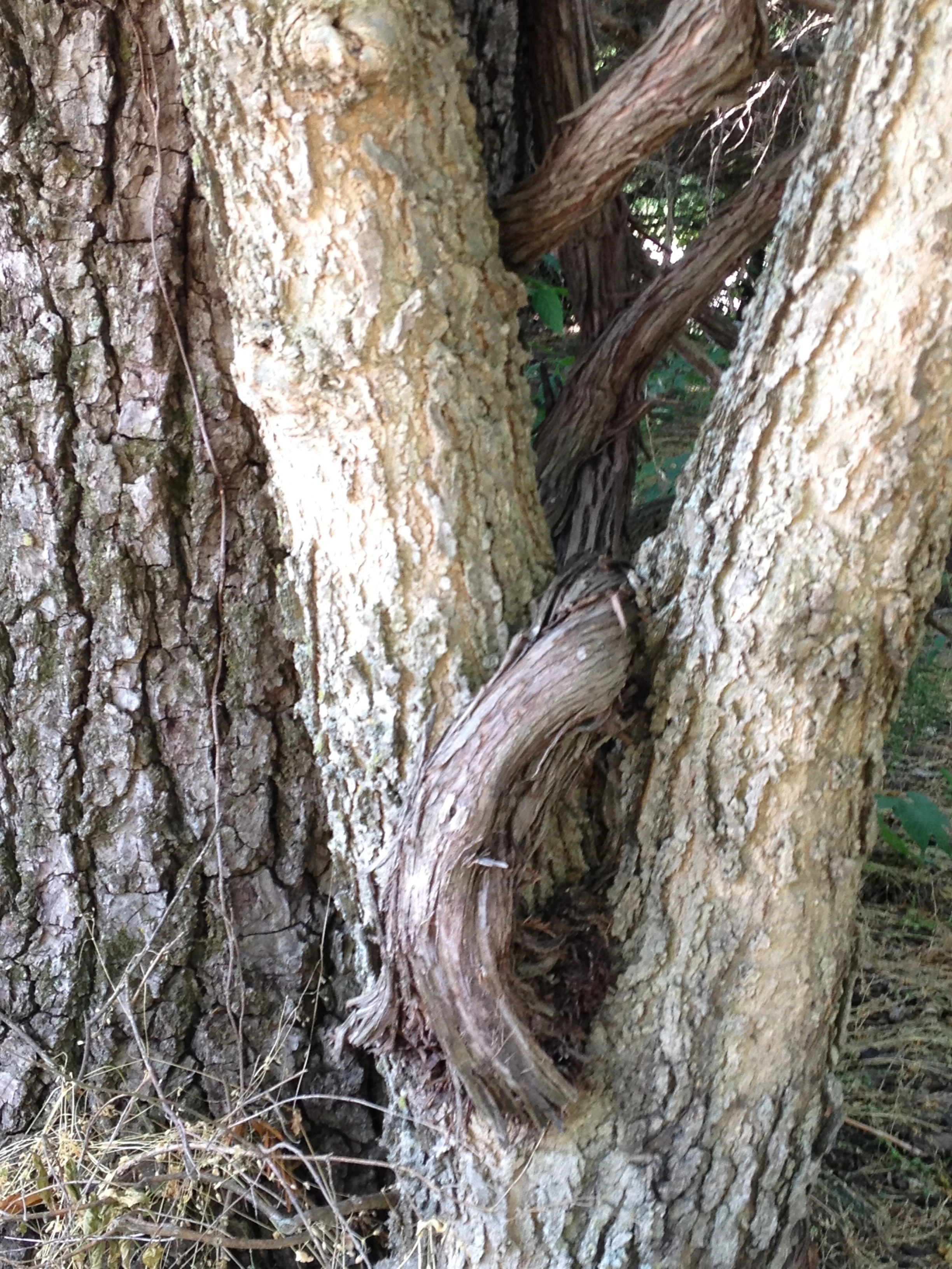 Up by the feed zone I saw this tree that had a vine growing out of it. I’ve never seen anything like it.