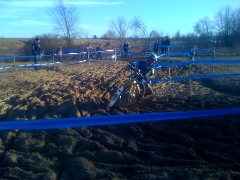 Yesterday I did about the same thing. I rode 2 laps at 8:30 am and my bike was completely clean. The ground was frozen hard. When the sun hit the dark soil, it melted pretty quickly. The course is fairly treacherous now. A thin layer of mud on top of frozen ground. The next two laps I did at 10, it was a mess, with everything gumming up pretty quickly.