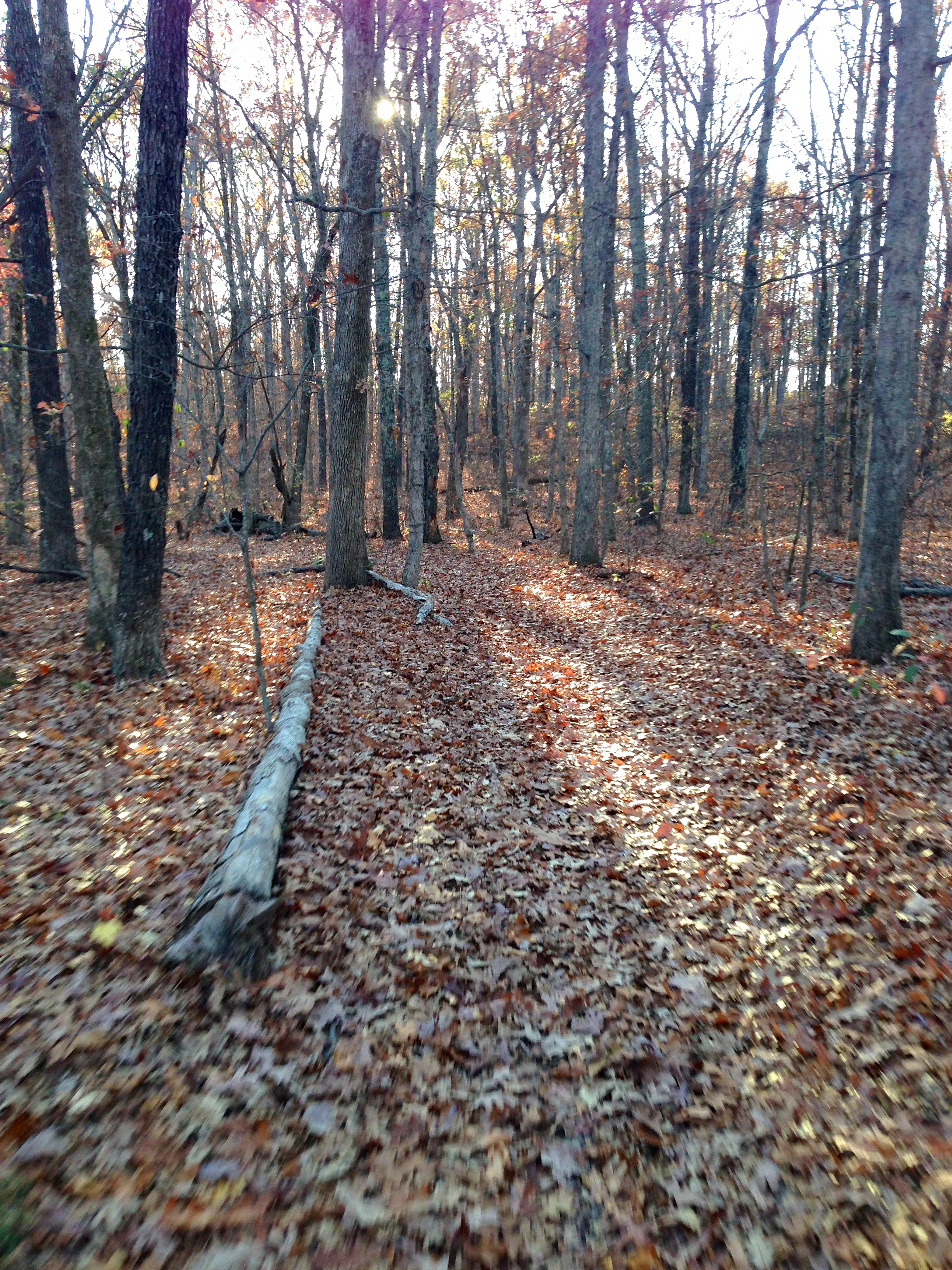 The course is mainly old horse trail, with lots and lots of exposed rock. This year, on top of that rock is lots and lots of dry leaves. I guess it was the perfect storm for leaves here and they all fell at the same time, maybe yesterday. Whatever the reason, you can’t see any of the course because of the cushion of leaves. That isnt’ a good thing. It is going to be easy to get lost, which is always a worry here.