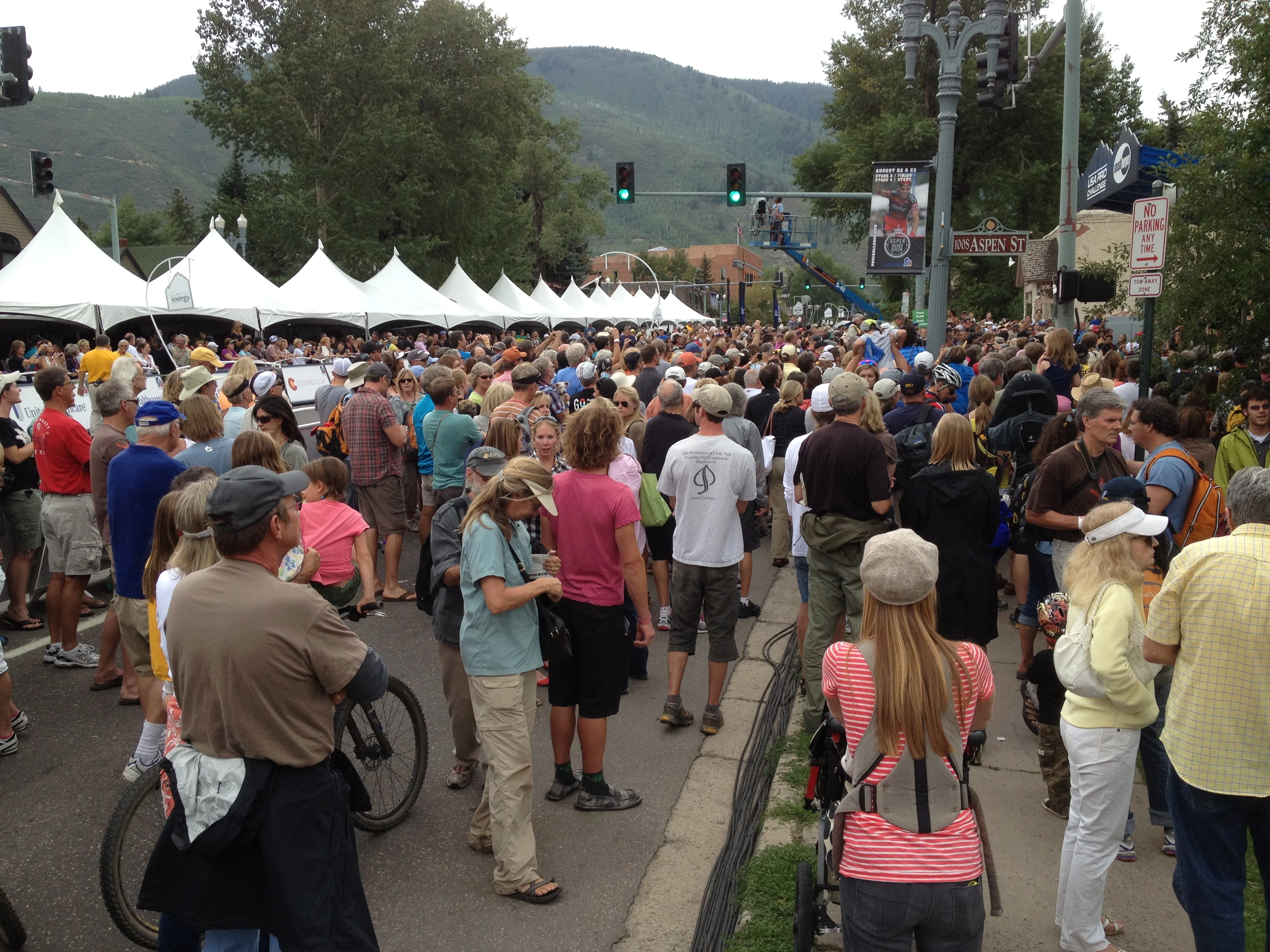 I missed the end of the race yesterday in person. I had been out for a ride and came back and was showering in Trudi’s room and watching the race on TV. When Danielson crested Independence Pass and started down I went out to go see it live. The problem with that plan was the the TV is time delayed. By something like 20-30 minutes. By the time I was standing on the course, the stragglers were coming by. That was mildly depressing since the finish was exciting with Tom Danielson barely held off a charging chase. I had and still have no idea why that is. I was pretty positive that I was watching the race as it was happening.