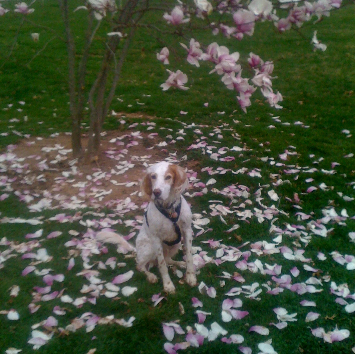 Bromont under a Magnolia tree that is mixed up with this warm weather.