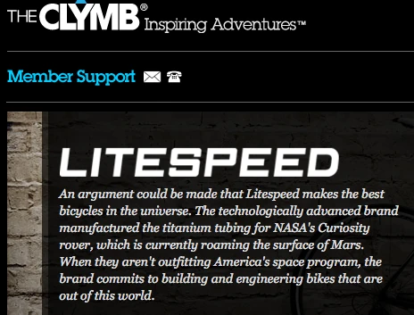 Every once in a while I put a link to the website, the CLYMB. I go there every so often because they have super deals on gear I use. I’ve posted it a couple times and have around $500 credit because I’ve received a $10 credit every time someone signs up because of my link. Now it is $20, which is twice as good. Anyway, I looked today and they have a bunch of cycling related sales going on right now. They have some Litespeed frames for $1000, bikes for $1700, a bunch of Castelli clothing cheap and then the normal other climbing and outdoor wear. Anyway, if you’re interested, click here to sign in. I think you just have to put in your email address to get started.