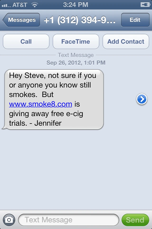 I got that text also. I have tried to chase them down before. It is generally considered spam and is therefore illegal. The problem is trying to get the phone company give you the identity of the send. Which if they do is likely a temporary phony number. I once actually was able to talk to a company that sent something like this. I saw no way for me to do anything about it. Unless you are in the same state. There was a guy/company that got busted for sending these a few years ago.