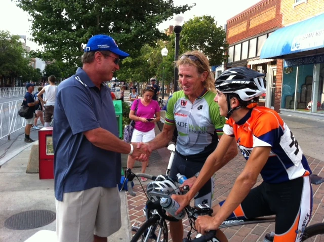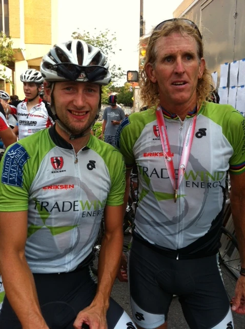 We, the TradeWind Team rode great. Mainly because Brian was so strong. He did the same thing last year at this race, never missing a move and riding off the front all day. It made it much easier for me just to hang and be rested for the end. The race was designated the State Criterium Championships, so being the first Kansas finisher, I was 1st.