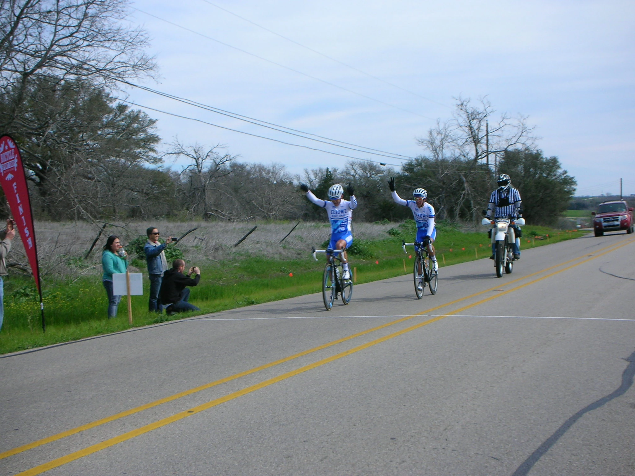 Joseph and Heath crossing the line together.