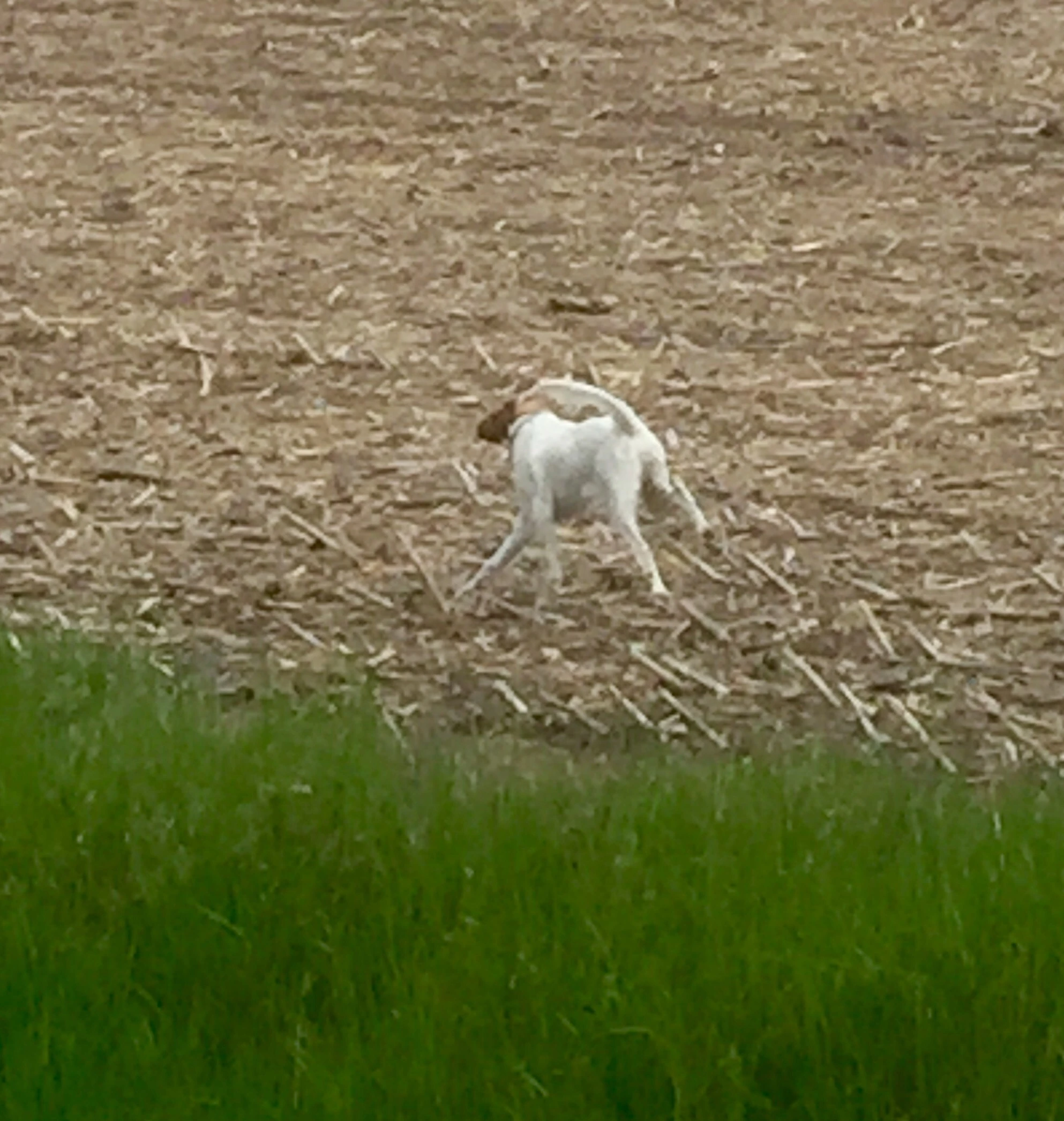 Tucker is all legs chasing bird in an Iowa corn field this afternoon.