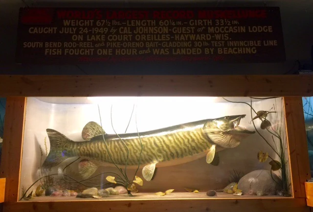 Cool photo of the musky. My great grandfather was the taxidermist who mounted it. Karl W. Kahmann. It still looks great after 67 years.