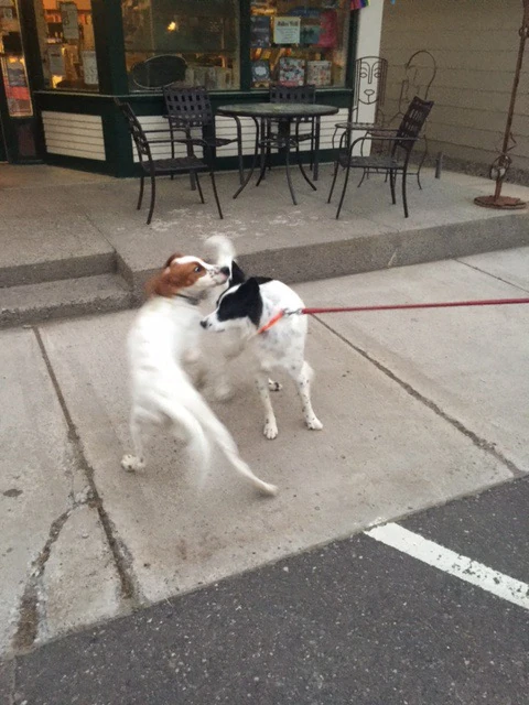 Molly playing yesterday. Notice the guy garbage pickings in the left.