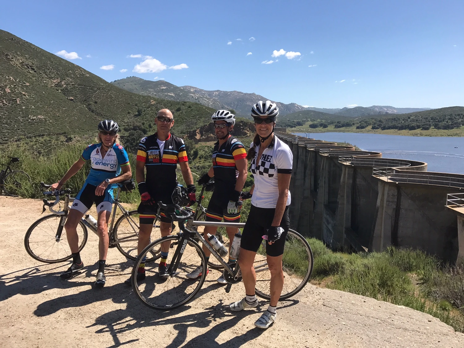We did a fair amount of dirt riding, sometimes just on dirt hiking trails and sometimes on dirt roads, climbing and descending. I had way too much pressure in my tires for how bumpy the dirt was. It had been raining out here a ton, this winter, and the dirt is pretty eroded. Plus, it was pretty windy from the West, so we didn’t have the fastest average speed, even though it was a hard effort.