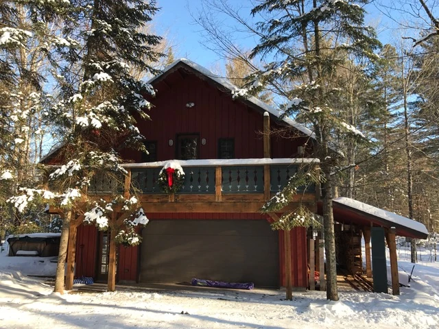 Since someone posed a question yesterday about water at the Simple Living Lodge up here in Cable, I thought I should post some pictures once again. Here are just a few I just took this morning. It started as a one room, three season cabin with a loft to sleep. Now it is three separate building with lots of places to sleep.