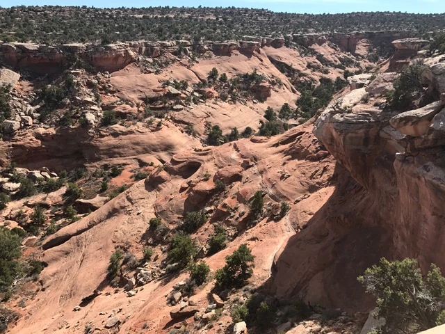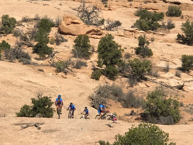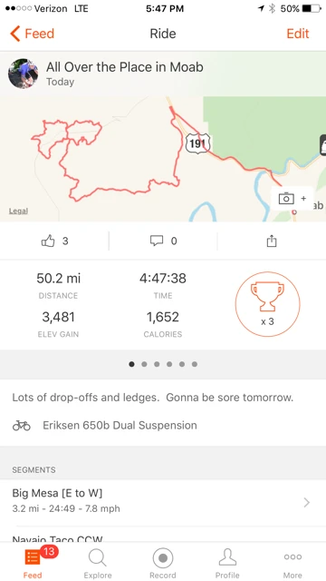 I’m still out in Moab. Doing exactly the opposite that of MSR. Maybe not time wise, but riding-wise. I road 50 miles yesterday off-road. It took 4:45 minutes. Lots of big drop-offs and bumpy riding. My rear Fox shock isn’t holding air and it is bumming me out. I’m carrying a shock pump today. The shock is new-ish, less than a year old and hasn’t been ridden that much. The bike has remote dual lockouts, front and back, on one lever. But that is pretty valueless when the rear shock has 40 psi in it.