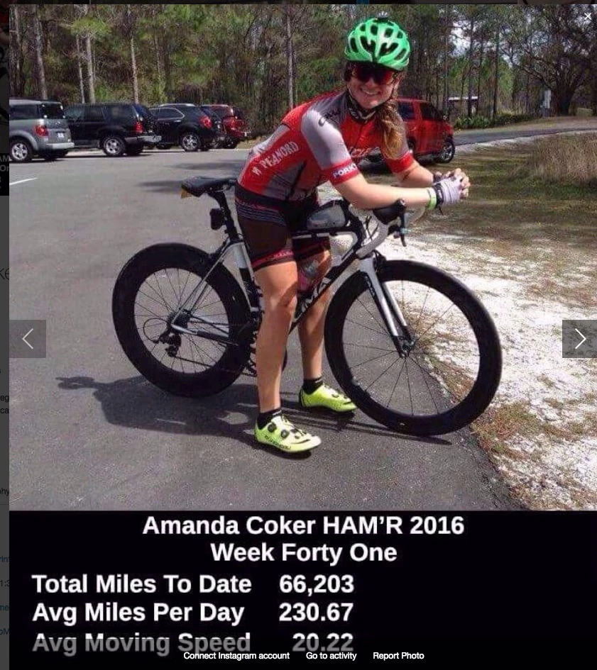 Pretty sure Amanda Coker is doing most of these rides on a recumbent. I’ve never ridden one so I don’t know how that adds up in terms of fatigue but I’m sure that’s why the speeds are so high.